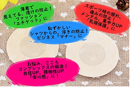 - 乳首の浮き防止、透け防止、摩擦防止、ニップルガード等にご使用できるニップルシールです。シールタイプなので、中央の粘着性がない部分を乳頭の中心に貼るだけの簡単手順。