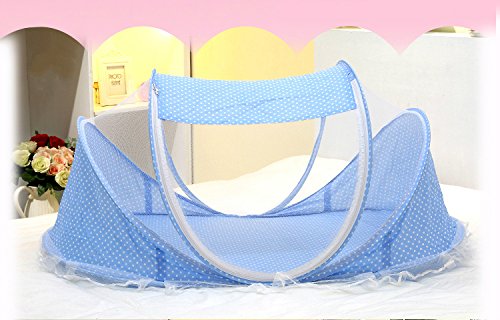 MUSTY ベビー蚊帳 ワンタッチ式 ベビー蚊帳 ベビーベッド 3点セット ピロー 音楽おもちゃ 床畳用 安眠 虫よけ ムカデ対策 虫刺され防止 便利 (ブルー)