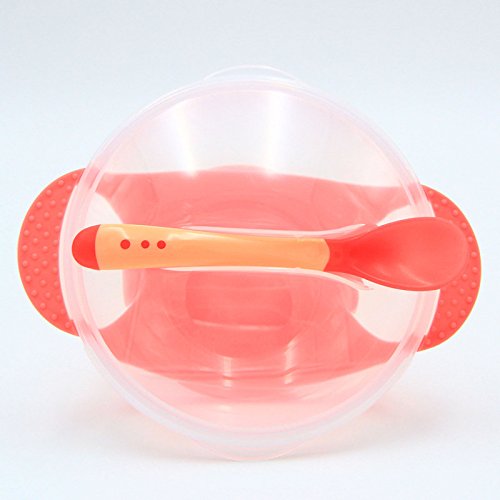 ベビー食器セット ベビー食器 ベビーボウル 離乳食スプーン トレーニングボウル 感温勺 吸盤付き 碗 セット フタ ブルー ピンク イエロー (ピンク)