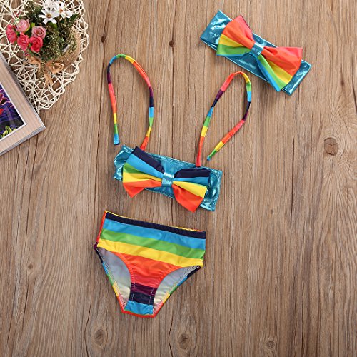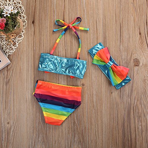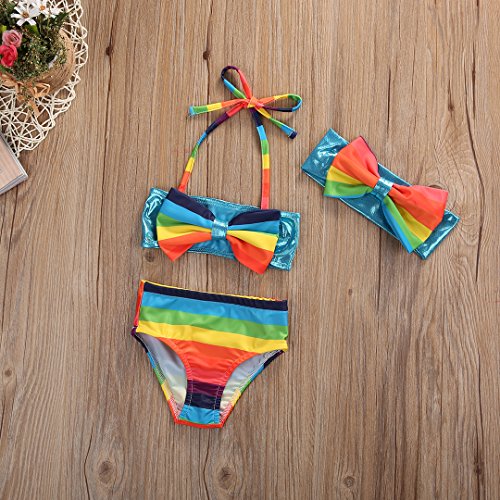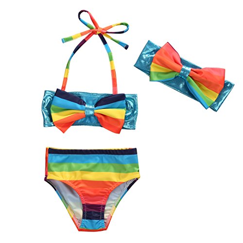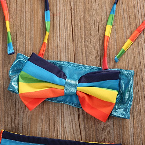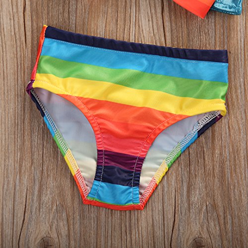 女の子 ベビー 水着 子供水着 レインボー ボーダー マリン りぼん 付 スレインイムウェア キッズ ジュニア ガールズ 虹  スクール にも  (100)