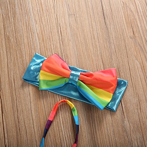 • 特徴:大きい蝶結び、レインボーストライプ、リボン付き3点セット