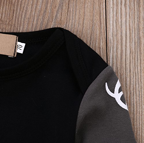 ベビーパジャマ ルームウェア ホームウェア 長袖上着 ロングパンツ 帽子付き 小鹿パターン 無地 3点セット 上下セット ベビー服 子供服 出産祝い 普段着 秋冬向け 寝間着 男女兼用 ブラック (100(18~24ヶ月))