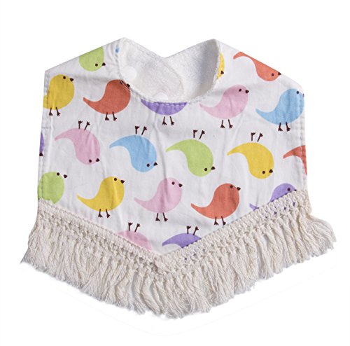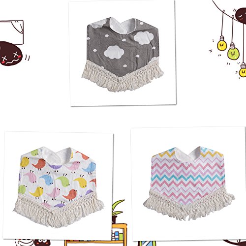 MUSTY よだれかけ スタイ バンダナ フリンジ 飾り お食事エプロン スナップビブ よだれカバー 3枚セット 調節可能 コットン 厚手スカーフ風 可愛い ドット柄 花柄 波 鳥プリント 出産祝い 贈り物 (セット2)