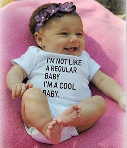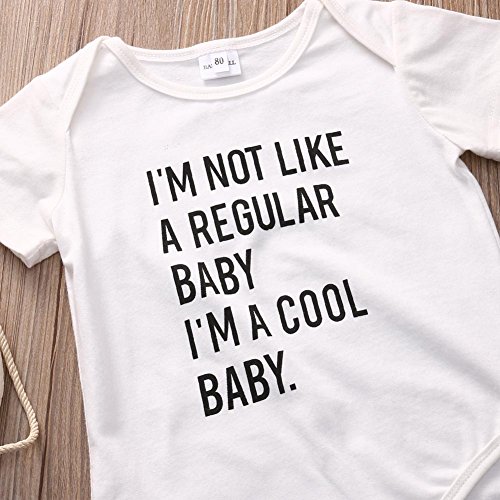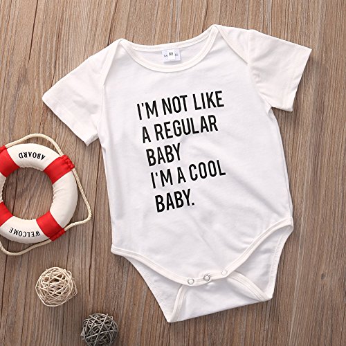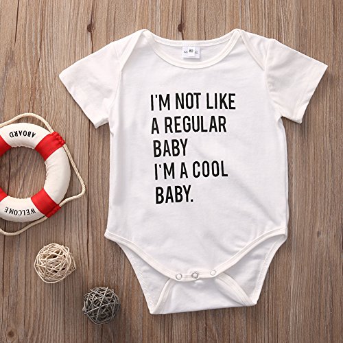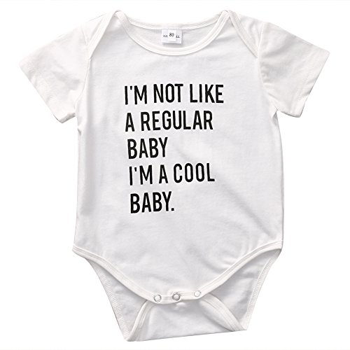 ベビー服 ロンパース ボディスーツ 女の子 男の子 半袖 プリント (0-3M(Tag 70), ホワイト)