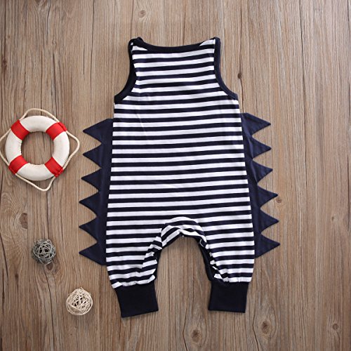 MUSTY ベビー 男の子 女の子 ロンパース ノースリーブ カバーオール ストライプ 無地 翼デザイン カジュアル 3色選べる 0~24ヶ月設定 (70, ストライプ)