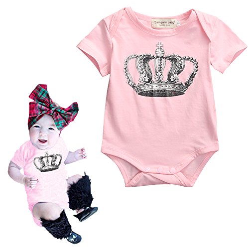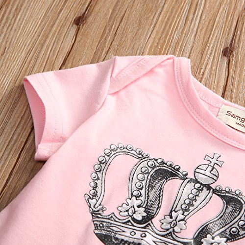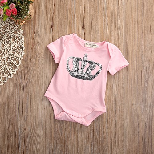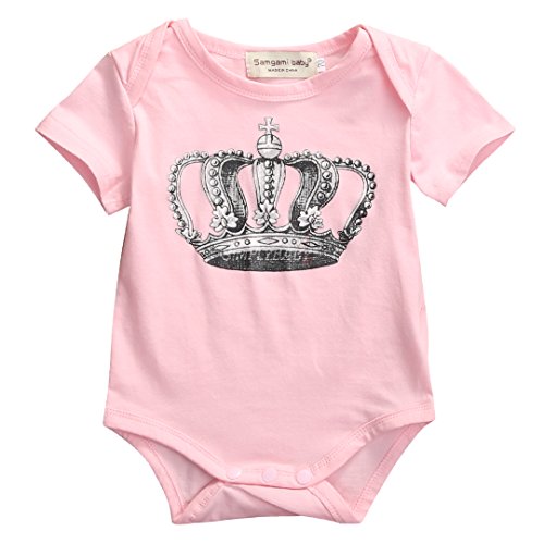 MUSTY ベビー 女の子 半袖 ロンパース ルームウェア ンコットン カバーオール クラウン プリント ピンク (70)
