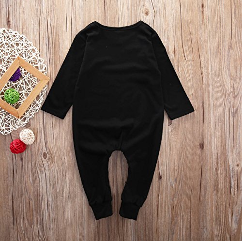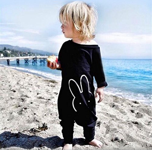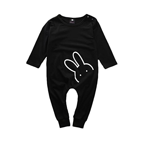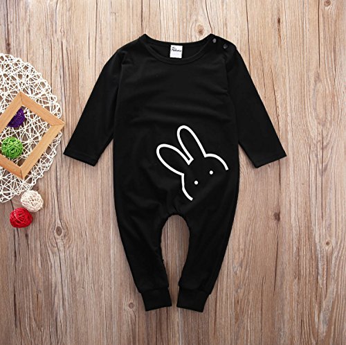 MUSTY ベビー カバーオール 可愛い ウサギ プリント ロンパース コットン 子供服 シンプル 肩ボタン 連体服 カジュアル ジャンプスーツ 出産祝い ブラック (80)
