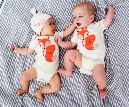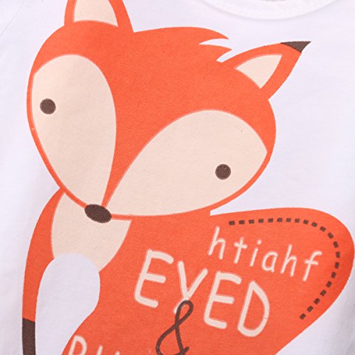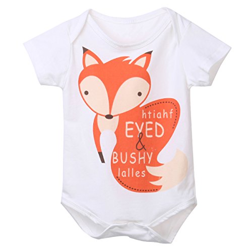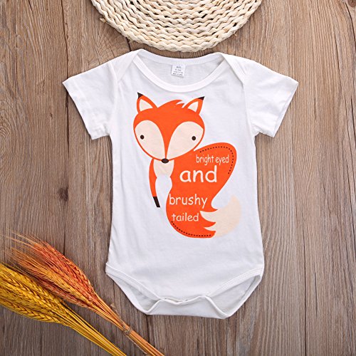 MUSTY 新生児 幼児 ロンパース 半袖 カバーオール キツネ プリント 動物 可愛い ホワイト 0~18ヶ月 (80)