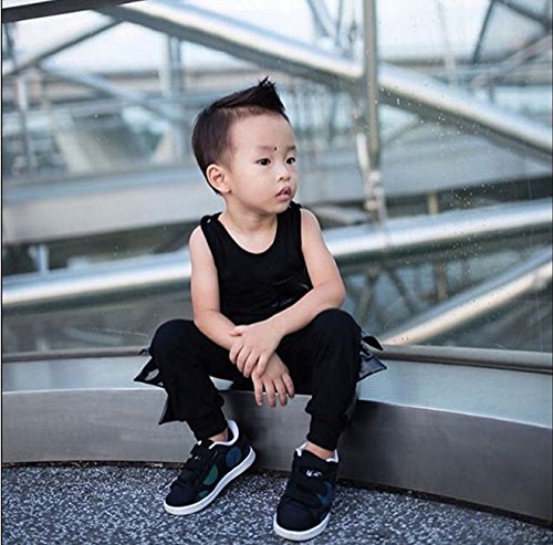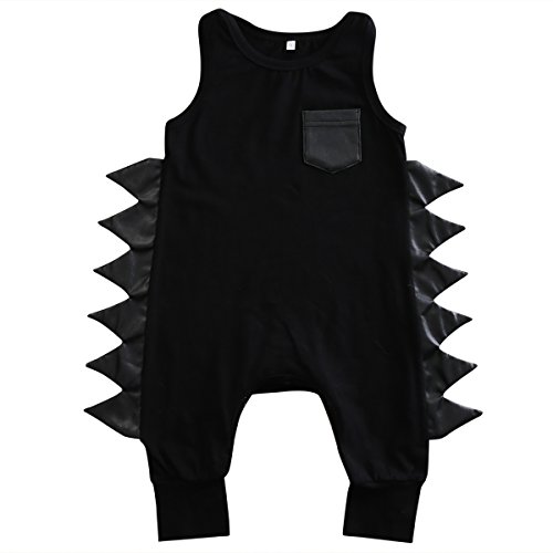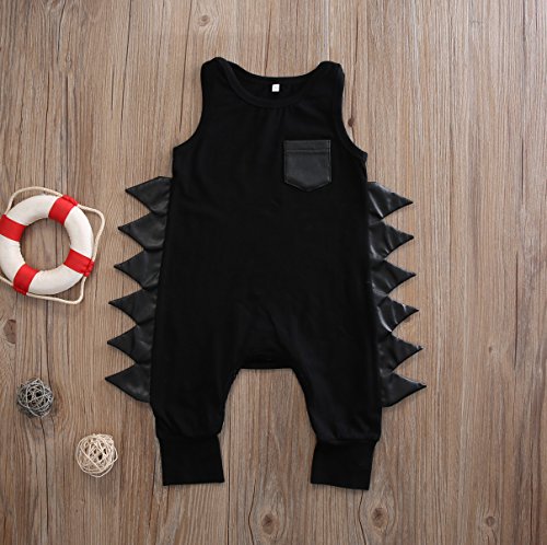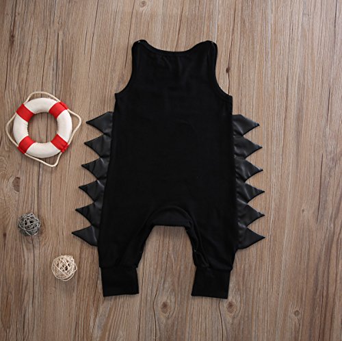 MUSTY ベビー 男の子 女の子 ロンパース ノースリーブ カバーオール ストライプ 無地 翼デザイン カジュアル 3色選べる 0~24ヶ月設定 (80, ブラック)