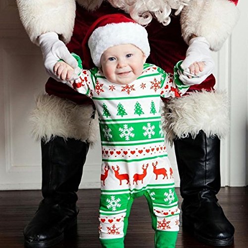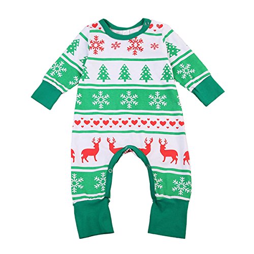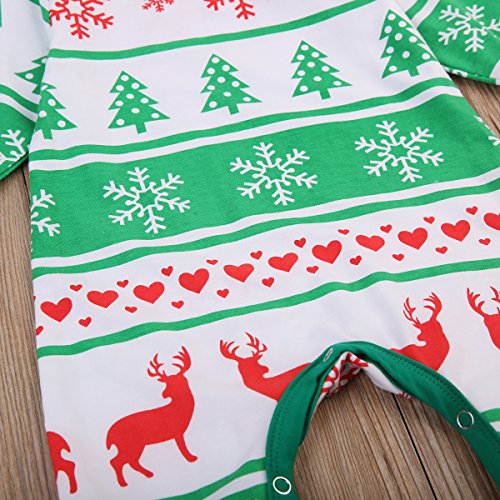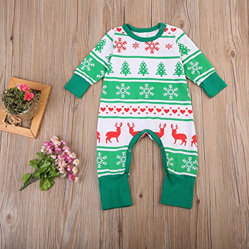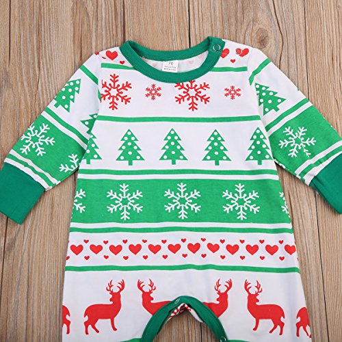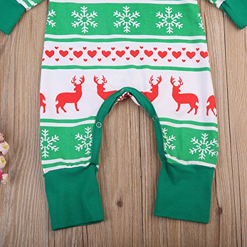 ベビー カバーオール 長袖 ロンパース ハート 鹿 スノーフレーク クリスマスツリー パターン キッズ服 70 80 90 100 赤 緑 クリスマスプレゼント 6ヶ月~3歳設定 (80, 緑)