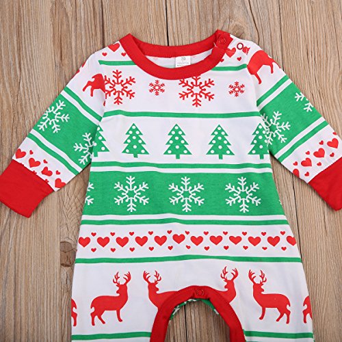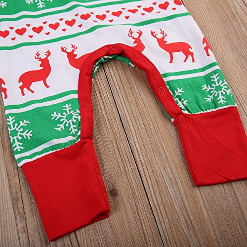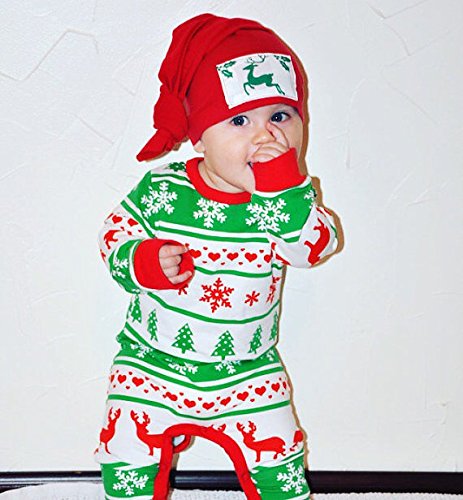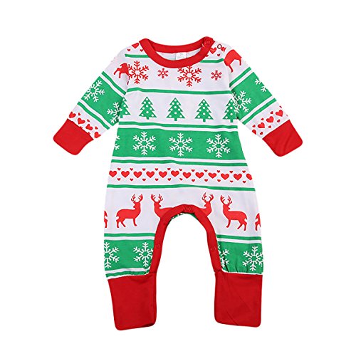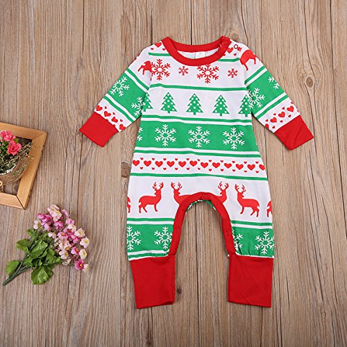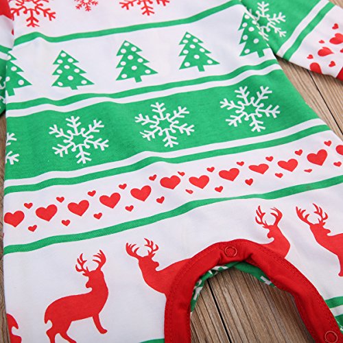 ベビー カバーオール 長袖 ロンパース ハート 鹿 スノーフレーク クリスマスツリー パターン キッズ服 70 80 90 100 赤 緑 クリスマスプレゼント 6ヶ月~3歳設定 (100, 赤)