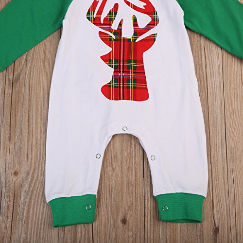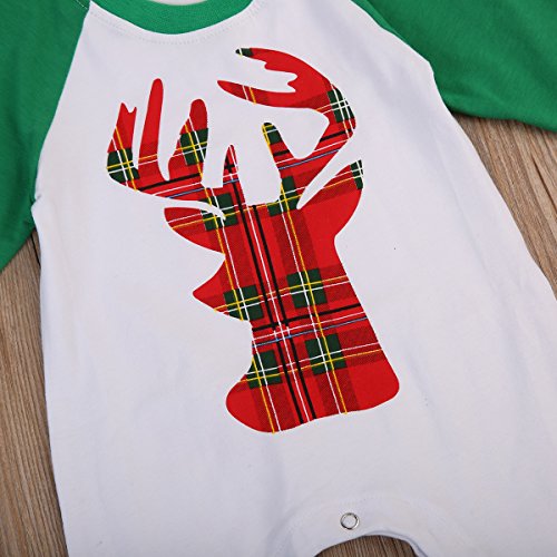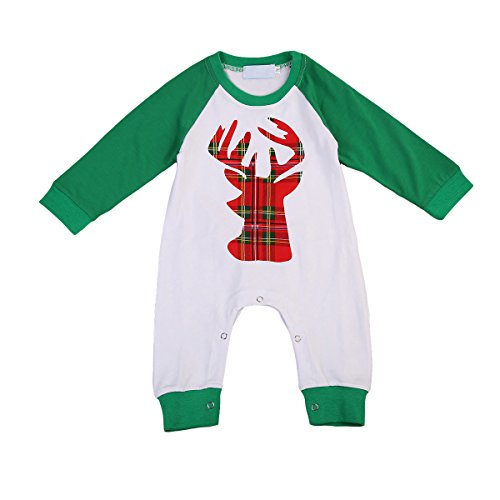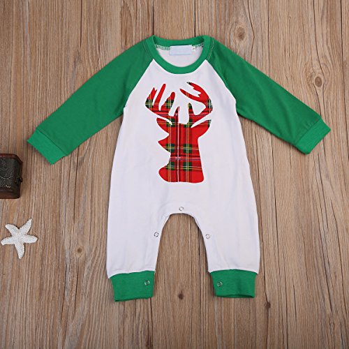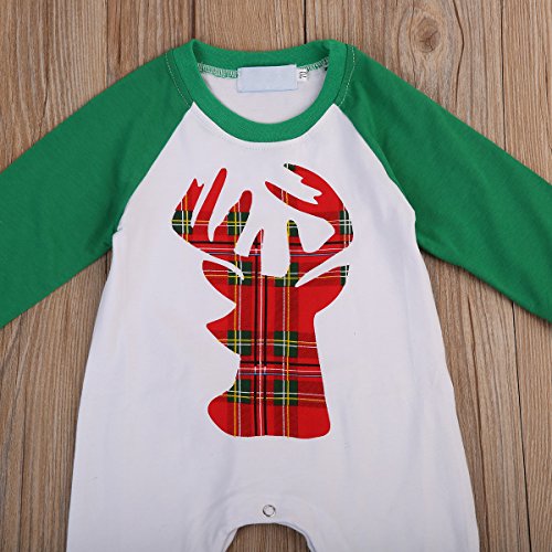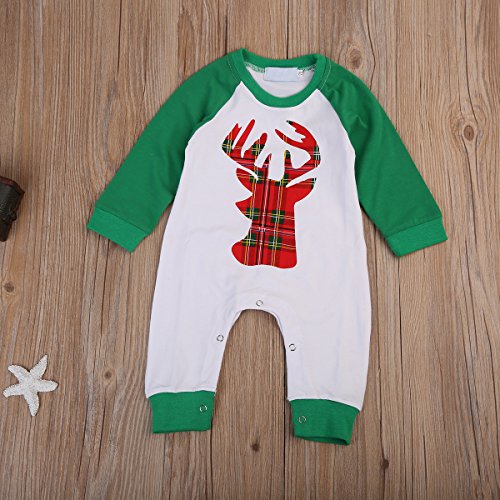 ベビー カバーオール 長袖 ロンパース 鹿パターン 男女兼用 0~18ヶ月設定 70 80 90 100 春秋冬 ホワイト クリスマス ベビー服 (80, グリーン)