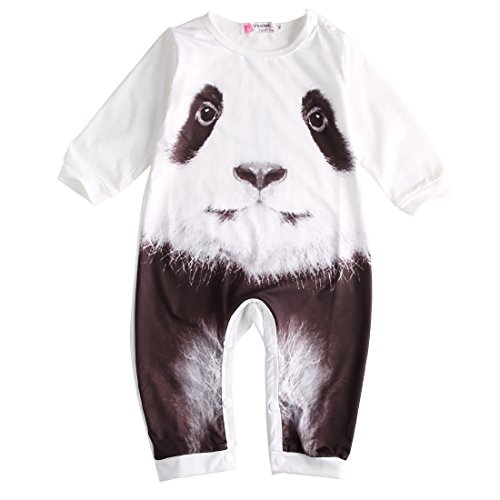 ベビー カバーオール 長袖 ロンパース パンダ タイガー パターン 白 グレー 0~24ヶ月設定 70 80 90 95  (95, パンダ)