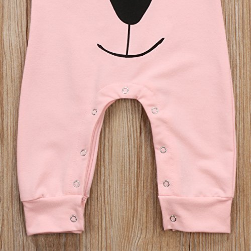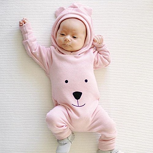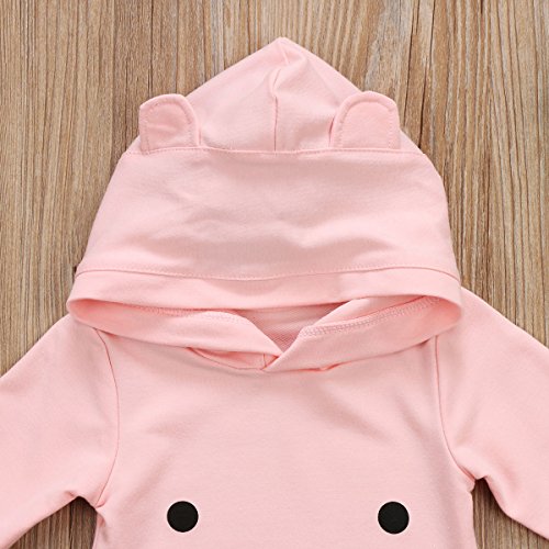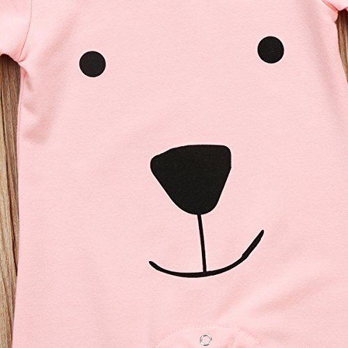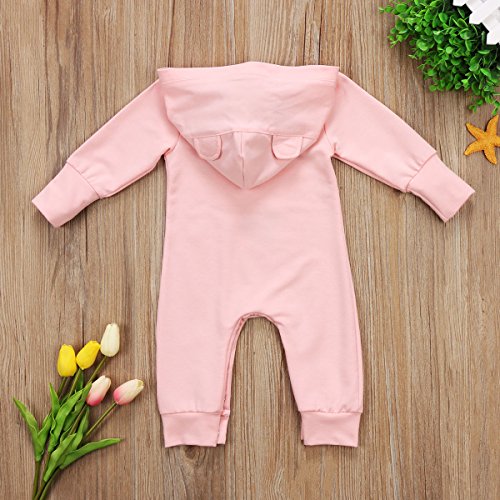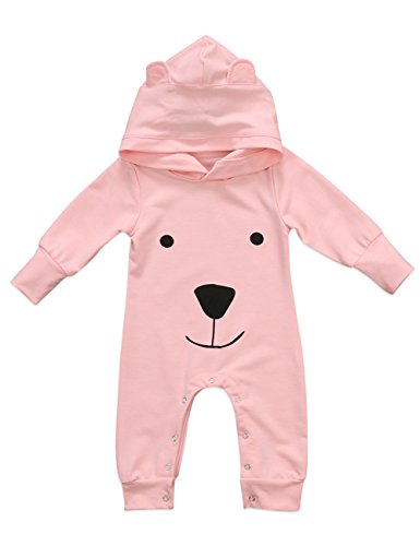 ベビー カバーオール 長袖 ロンパース クマさん 熊 耳 付き 子供服 ベビー服 キッズ服 男女兼用 可愛い ジャンプスーツ 白 ピンク 0~24ヶ月設定 帽子付き 春秋冬 60 70 80 90 (70, ピンク)