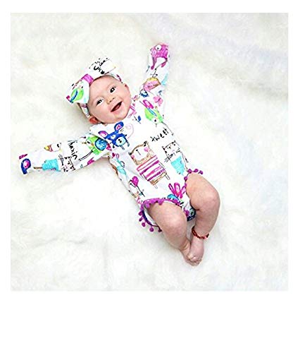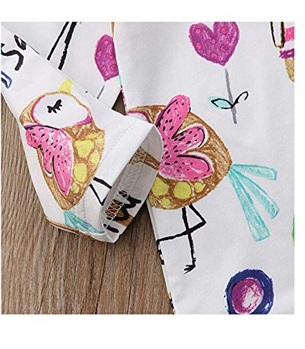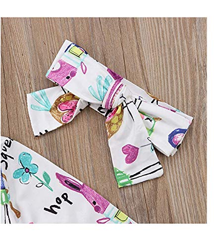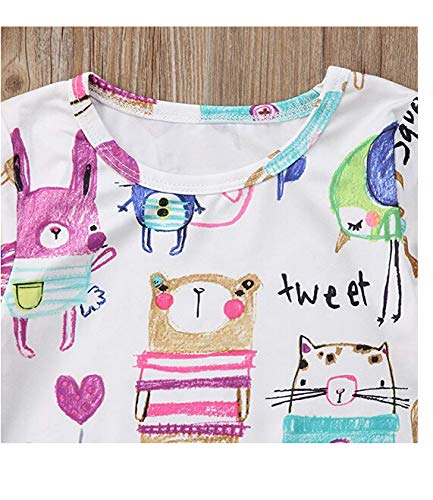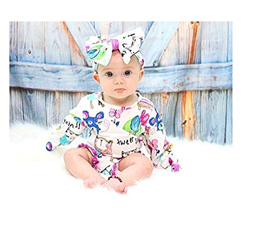 ベビー服 子供服 女の子 長袖 ロンパース ベビー カバーオール ワンピース リボン 付き 2点ゼット 動物プリント ウサギ 小鳥 小猫 0~3歳 ホワイト 春夏秋 (90(長袖新品))