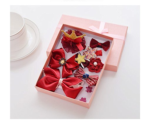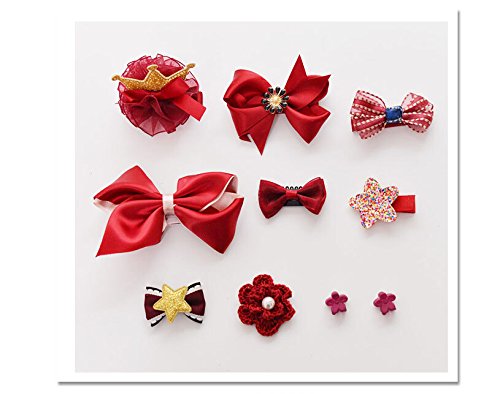 MUSTY ヘアピン アクセサリー セット (10個) 女の子 髪飾り 出産祝い ギフト 誕生日のプレゼント 可愛い ヘアクリップ リボン ヘアピン 子供も通用 キッズ 髪留め ヘアバンド お宮参り パーティ お洒落 記念日 イベント 写真撮影 (ワインレッド)