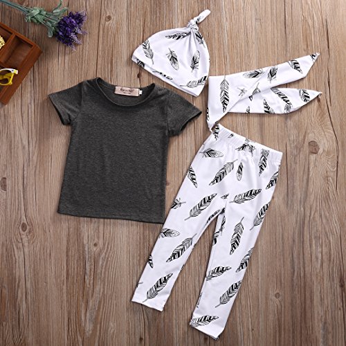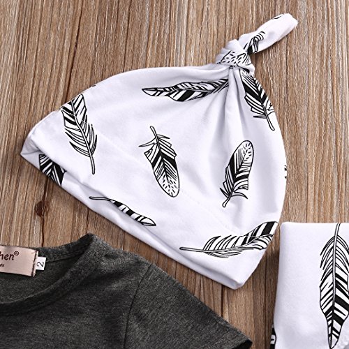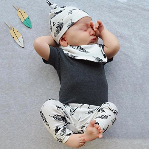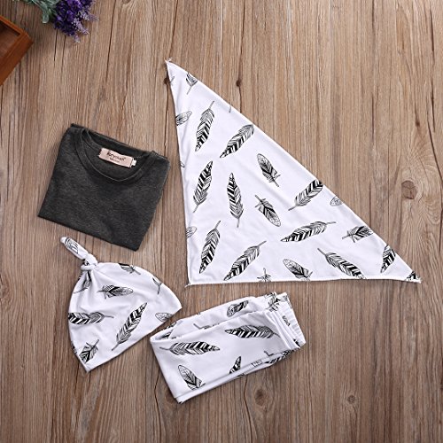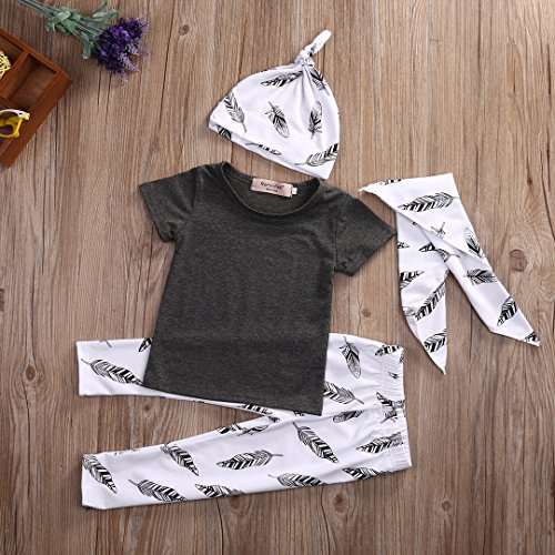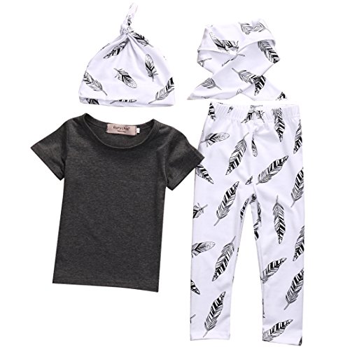 MUSTY 子供 女の子 男の子 無地 Tシャツ 羽 プリント ロングパンツ よだれかけ付き 帽子付き 4点セット かわいい 夏 (0-1歳)