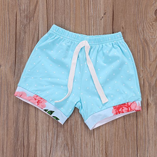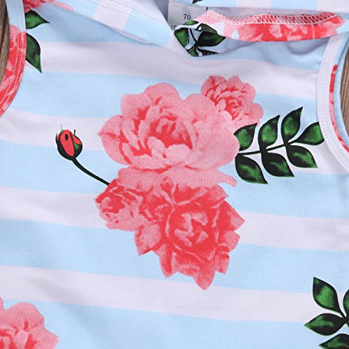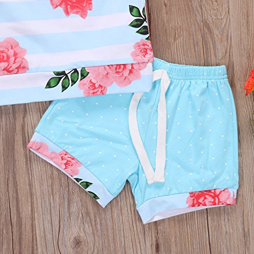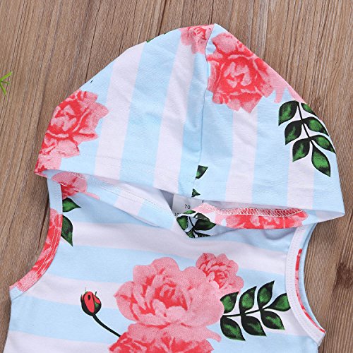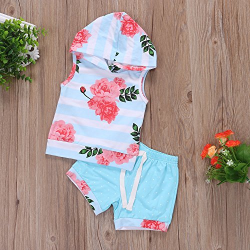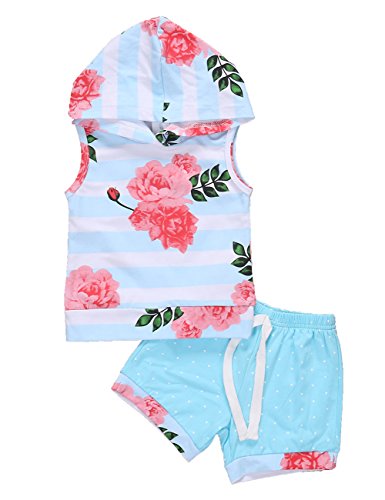 MUSTY 子供 夏 ベビー 花柄 ストライプ 袖なしTシャツ ドット柄 ハーフパンツ 帽子付き 二点セット ブルー 0~3歳設定 (100)