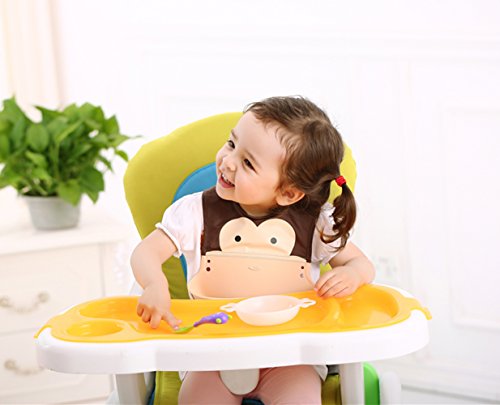 MUZJOY シリコンビブ お食事用エプロン 防水スタイ よだれかけ ソフト スマート 立体ポケット付 / キイロイ トラ