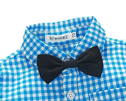 MUZJOY ボーイズ ベビー フォーマル チェック柄シャツ+オーバーオール 子供服 発表会 結婚式 紳士服 2点セット(ブルー100cm)