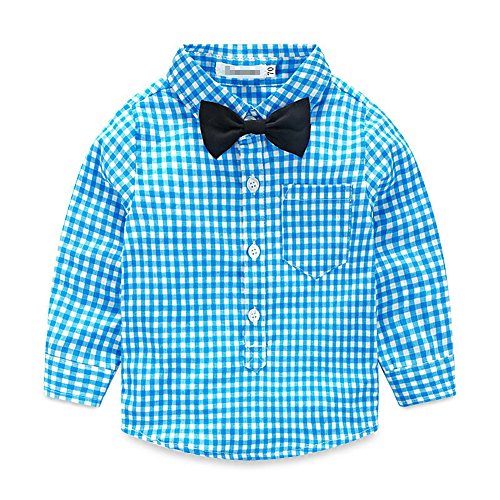 MUZJOY ボーイズ ベビー フォーマル チェック柄シャツ+オーバーオール 子供服 発表会 結婚式 紳士服 2点セット(ブルー高級仕様 綿100%