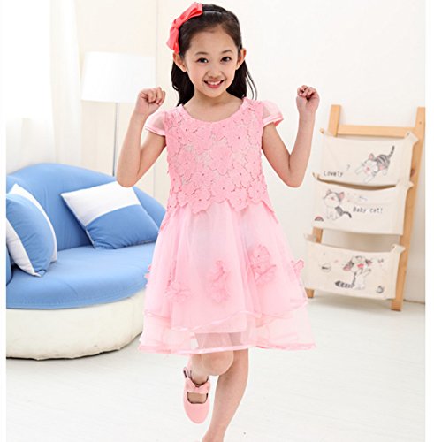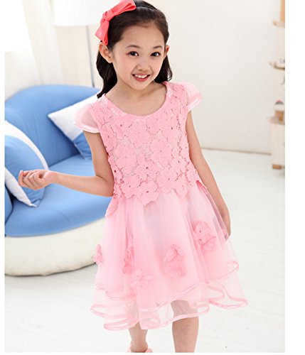 【立体的なお花のドレス】こども キッズ ドレス フォーマル ワンピース 発表会 結婚式 レース 花 フラワー セレモニー 赤ちゃん チュール (08:ピンク120)