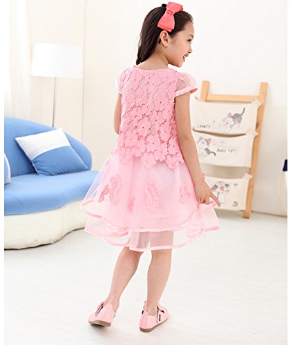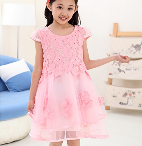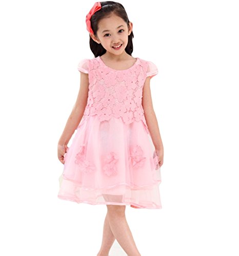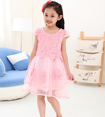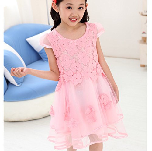 【立体的なお花のドレス】こども キッズ ドレス フォーマル ワンピース 発表会 結婚式 レース 花 フラワー セレモニー 赤ちゃん チュール (07:ピンク110)
