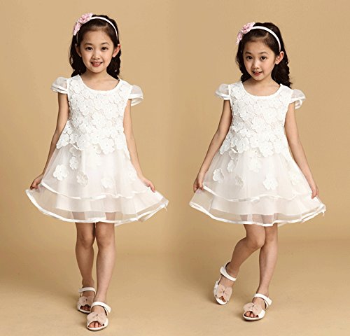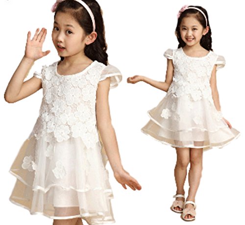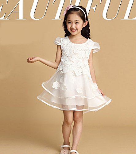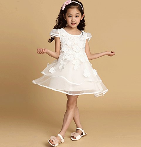 【立体的なお花のドレス】こども キッズ ドレス フォーマル ワンピース 発表会 結婚式 レース 花 フラワー セレモニー 赤ちゃん チュール (13:ホワイト120)