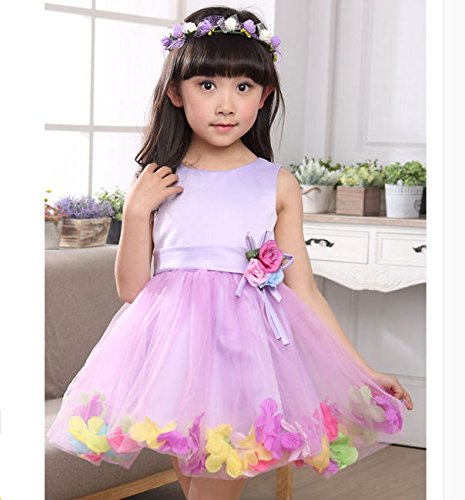 【お花の入ったドレス】こども キッズ ドレス フォーマル ワンピース 衣装 ベビー 発表会 結婚式 花 誕生日 バースデー セレモニー 赤ちゃん チュール (01:ラベンダー100)