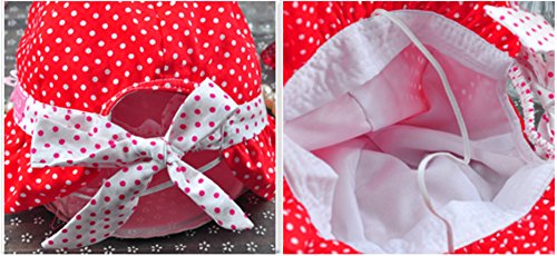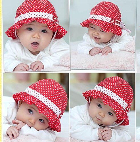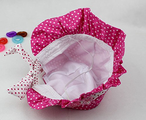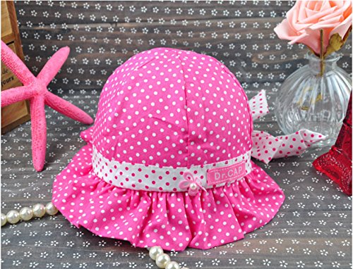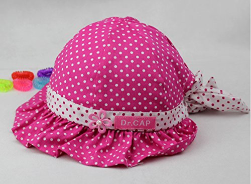 【紫外線からベビーを守る&選べる8色】水玉 可愛い 帽子 つば 付き フリル リボン ドット 花 フラワー フード ベビー キッズ 日焼け 帽子 UV 日よけ (D. 濃ピンク)