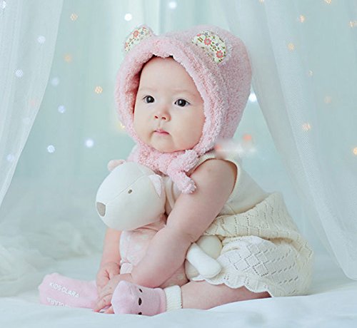 【ふわもこ&耳まであたたか】選べる 5色 耳 付き ふわふわ 帽子 くまさん 花 もこもこ ベビー キッズ 防寒