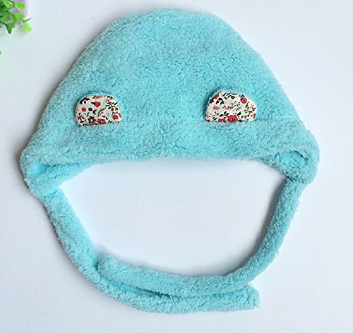 Meilleur reve(メイヤーリーブ)【ふわもこ&耳まであたたか】選べる 5色 耳 付き ふわふわ 帽子 くまさん 花 もこもこ ベビー キッズ 防寒 (4ブルー)