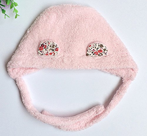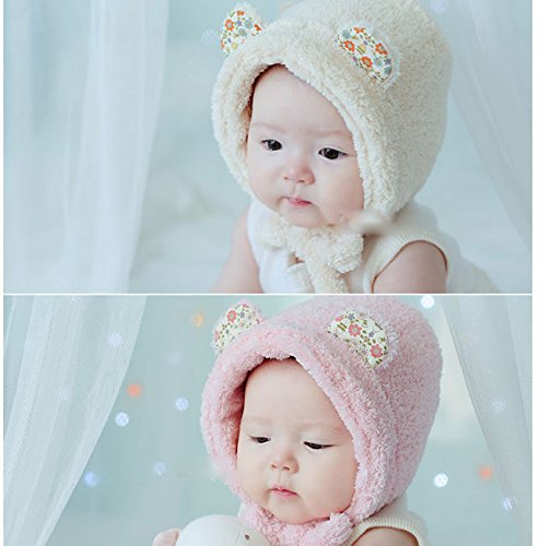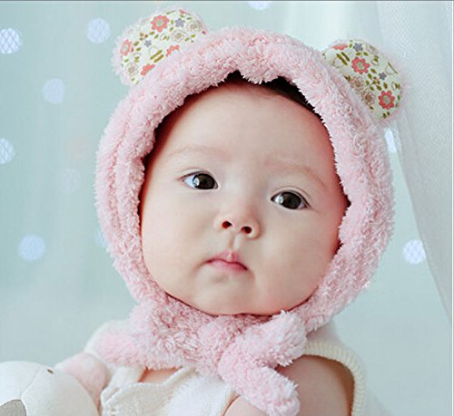 Meilleur reve(メイヤーリーブ)【ふわもこ&耳まであたたか】選べる 5色 耳 付き ふわふわ 帽子 くまさん 花 もこもこ ベビー キッズ 防寒 (1ピンク)