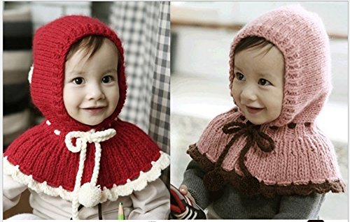 Meilleur reve(メイヤーリーブ)ふわふわ 帽子 付き ケープ 一体型 マフラー ネックウォーマー フード ベビー キッズ 防寒 (04: サーモンピンク)