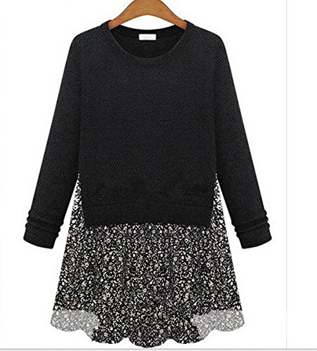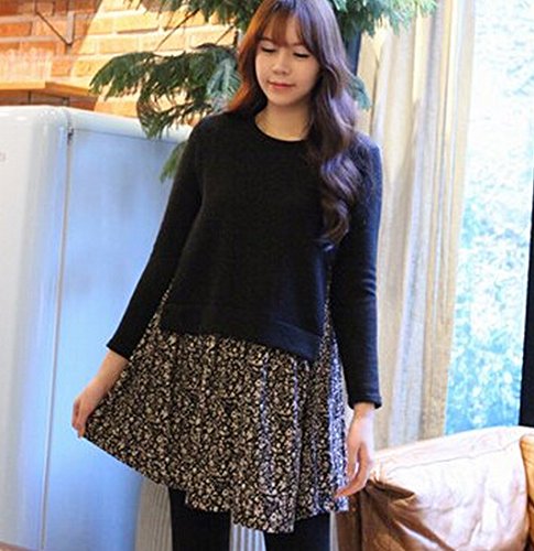 (Meilleur reve)【産後も着れる/選べる色とサイズ】マタニティ ワンピース 花 柄 切り替え 異素材 ドッキング チュニック ウエア 赤ちゃん ベビー(I. ブラックXL)