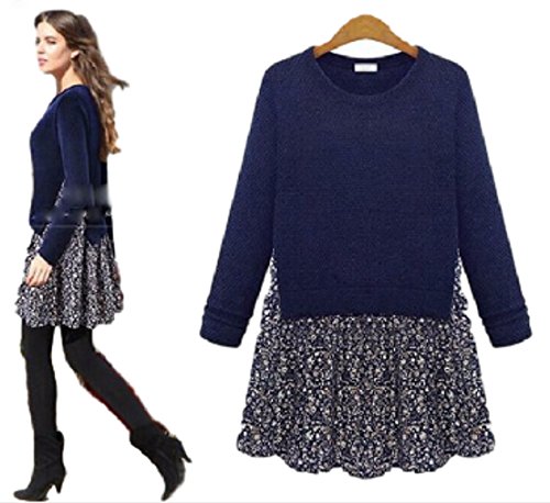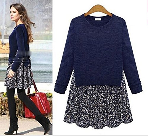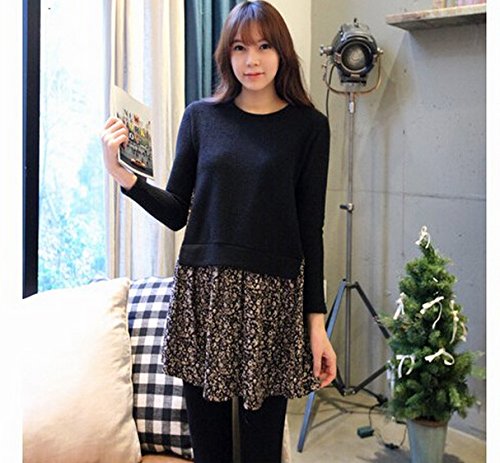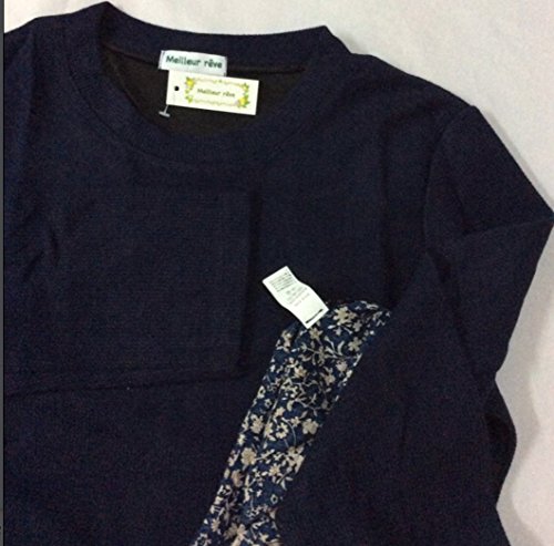 (Meilleur reve)【産後も着れる/選べる色とサイズ】マタニティ ワンピース 花 柄 切り替え 異素材 ドッキング チュニック ウエア 赤ちゃん ベビー (D. ネイビーM)