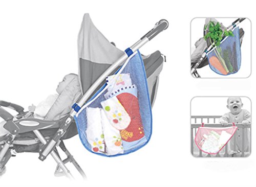 Meilleur reve(メイヤーリーブ) ベビーカー 用 サイドネット バッグ 大口 収納 ポケット サイドバッグ メッシュ ケース 大容量 (01:ブルー)