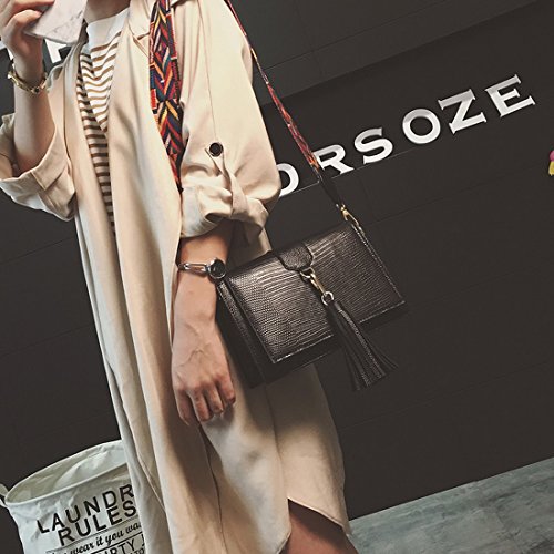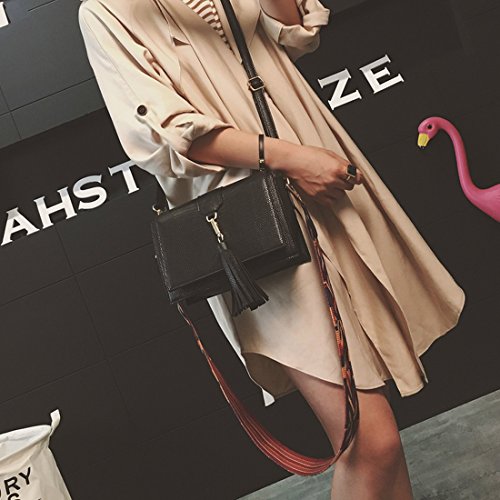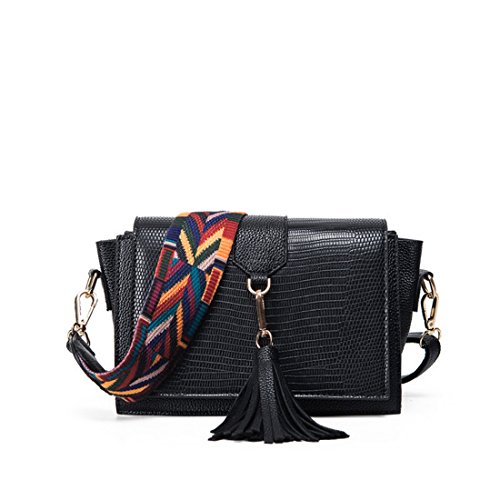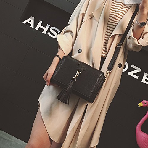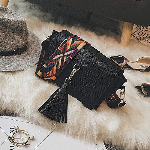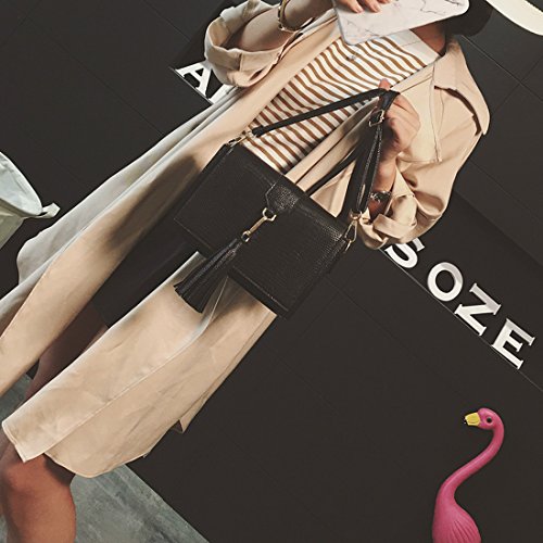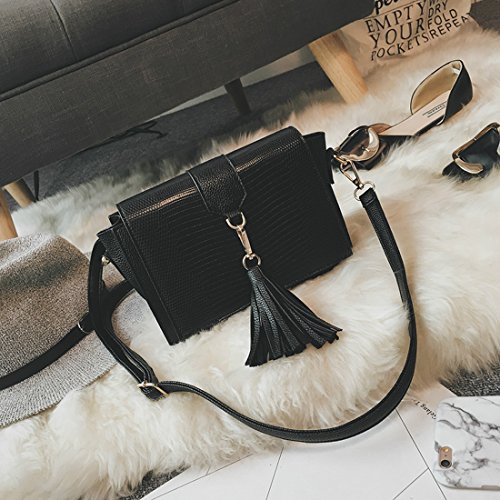 URIJK ポシェット ショルダーバッグ タッセル付き PUレザー 斜めがけ 肩掛けバッグ おしゃれ 小物入れ チェーン トート バッグ (ブラック)