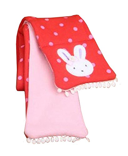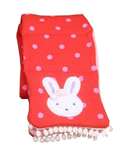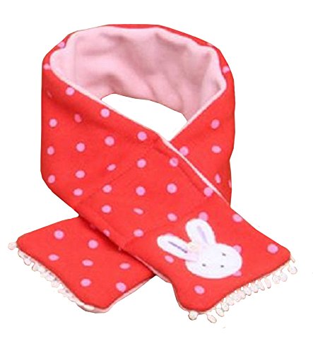 ベビー 幼児 キッズ 子供 用 うさぎ クマ ワンポイント マフラー 男女兼用 全4色 (レッド)