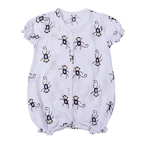 MYDABABY ベビー ロンパース キッズ 夏 プリント 子供 ガーゼ 素材 軽量 薄手 コットン100% (猿柄 90)