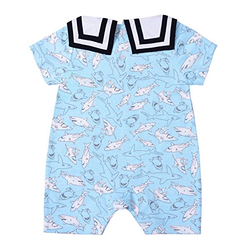 MYDABABY キッズ コーマコットン 赤ちゃん ロンパース 60 70 80 90 6ヶ月~2歳 サメ柄 70