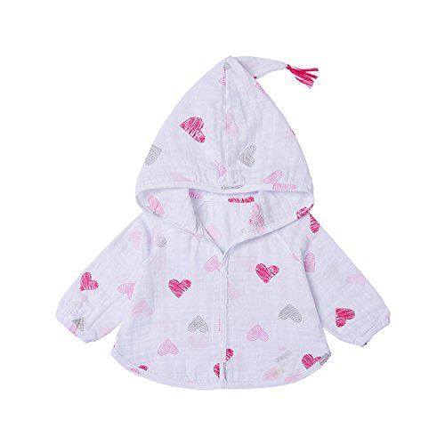 MYDABABY キッズ 日焼け止め 子供 ガーゼ 冷房対策 エアコン 室内 長袖 キッズ 日焼け止め 軽量 薄手 コットン100% (ピンクグレーハート柄 70)