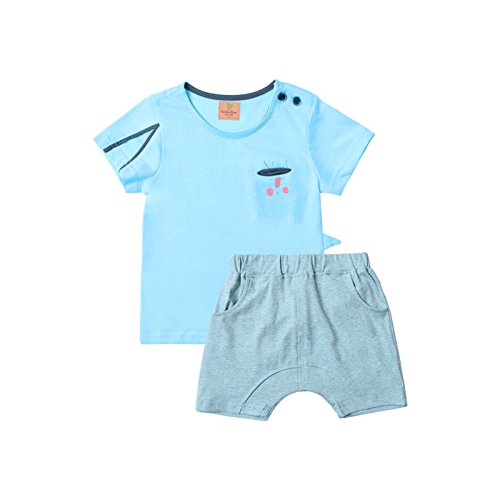 MYDABABY 赤ちゃん 2点セット 73 80 90 100 キッズ tシャツ ズボンセット 服 コットン ボイズ ブルー 90