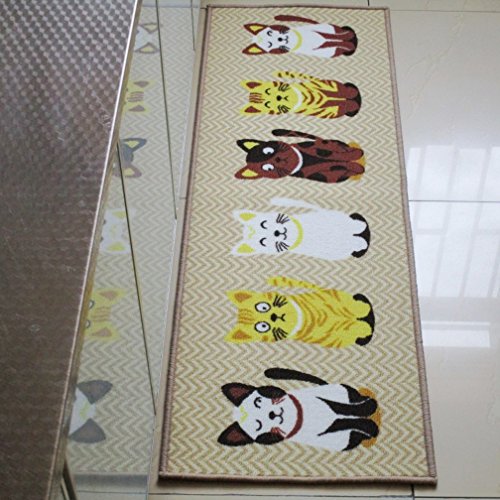 MYJP カーペット マット 可愛い猫のデザイン 手触りが優しいラグ 両面滑り止め付 ナイロン素材 折り畳み可能 洗える 廊下 キッチン用 40*120CM