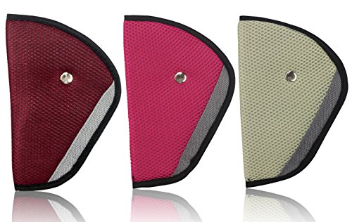3歳以上の子供用 シートベルトサポーター シートベルト調整パッド シートベルトカバー 取り付け簡単 (ワインレッド、バラ色とベージュ)