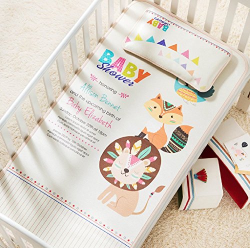 ベビーひんやりマット 冷感敷パット ひんやりの敷きマット ベビー用ひんやりシーツ 寝ござ 接触冷感 枕付き 赤ちゃん用 夏用 通気吸汗 暑さ対策 (ライオン)