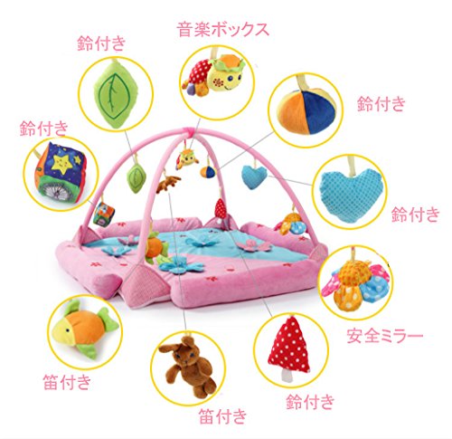 ベビージム プレイジム プレイマット マット アクティビティ ジム デラックスジム 赤ちゃんのおもちゃ おねんね はらばい 指遊び インテリア プレゼント 出産祝い 音楽 ピンク 9個おもちゃが付き