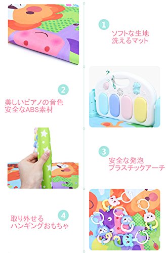 - おねんね、はらばい、指遊びの3つのしかけ!ピアノの配色が可愛くて、ベビーの視覚、聴覚等の感知力を育てます。赤ちゃんがピアノ足で蹴ったり、手で押したりすると、音楽が流れて、楽しく遊べます。