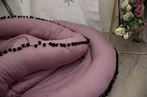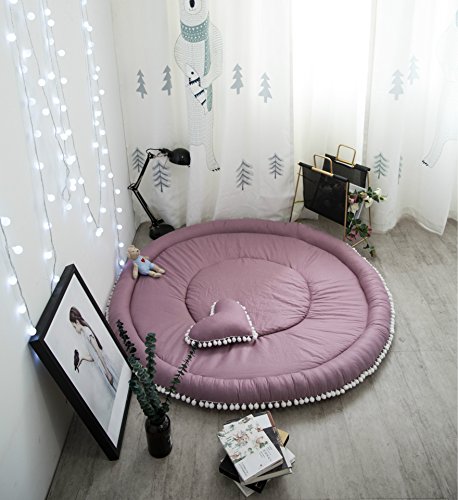 ベビーマット プレイマット ルームマット ラグマット 厚いマット 遊びマット 可愛い 北欧風 抱き枕付き コットン 大人気 キッズ 子供 直径140cm 誕生日 クリスマス プレゼント (パープル)
