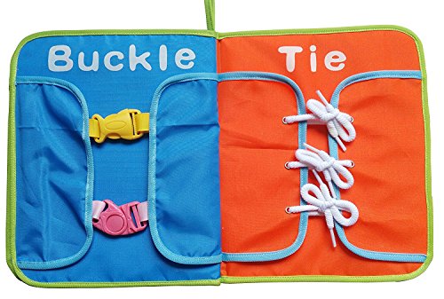- ちょうちょ結び、ボタンなどの開け閉めなどを遊びながら練習することができる知育玩具です。